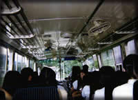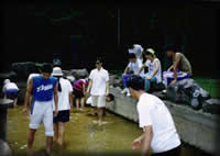 行き、帰りは送迎バス運行。だが、エアコンなしでとても暑い。そのうえバスがとっても古い型なので坂道を登れるかとても心配だった。新車に買い換えたのだろうか? 合宿の中日にはレクリエーションの日が設けられ“黒姫ハイラン ド”なるトコでソフトボール・テニス・岩魚のつかみ取り・バー ベキューが行われる。