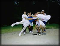確か体育会系のサークル連合が主催してたと思うのだが、4月と11月 頃に、サークルorクラス対抗のソフトボール大会があった。TKDは4月 のほうはよく覚えてないのだが11月のほうは毎年参加していたのでよ く覚えている。なにせ情けないくらい弱く、TKDが在籍していた頃は 1勝もしたことがなかったように思う。文化系サークルゆえの悲劇で ある。また、これとは別にサークル単独のソフトボール大会も年に数 回催される。基本的にみなさんヘタクソ。