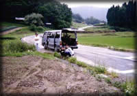 見にくいがバンの中にはママチャリが入っていて、目的地でサイクリ ングをするつもりだった。チャリ+7人+ギターが運べたのだから今思 うとすごい車だったんだ。