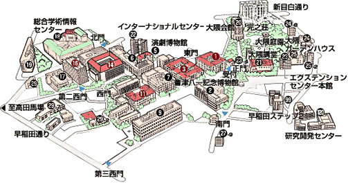 | 9 法研・商研・比研・産研 | 25 大隈ガーデンハウス・キャリアセンター |